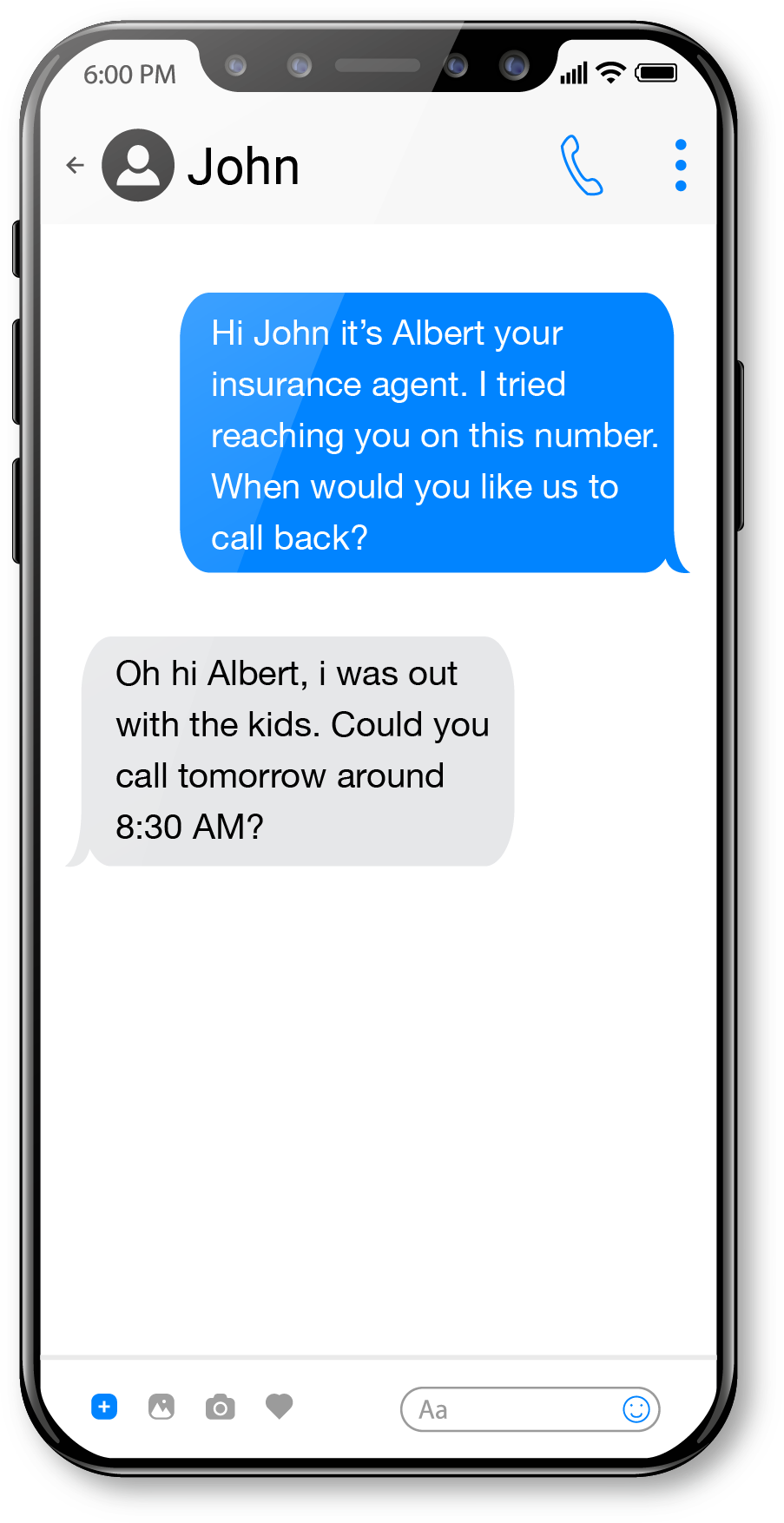 The “Call Me Back” text service allows users to schedule a call with an insurance agent or request a call back in case of a missed call.